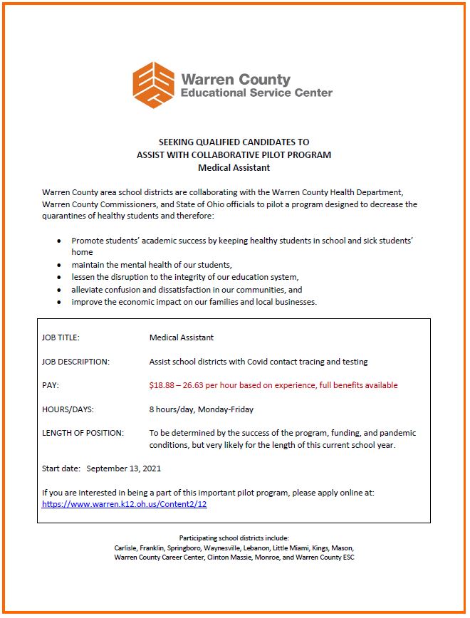 Warren County area school districts are collaborating with the Warren County Health Department, Warren County Commissioners, and State of Ohio officials to pilot a program designed to decrease the quarantines of healthy students and therefore: