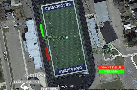 Stadium is located at 409 Stacey Rd Chillicothe, OH 45601. (The address listed on the bracket is incorrect) This address will take you directly to the main stadium entrance which will be the only entrance open tomorrow night. All spectators and team personnel will enter through this gate.